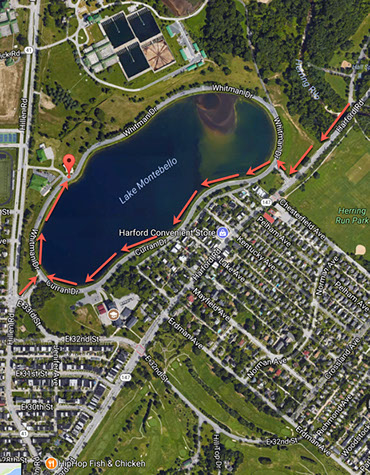 Lake Montebello - Herring Run Park Parking is available on Whitman Drive near the old pump station. From I-95 and I-695 (South of Baltimore):
